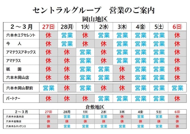 *休業日には変更の場合がございます。変更時にはコチラのホームページでお知らせをいたします。